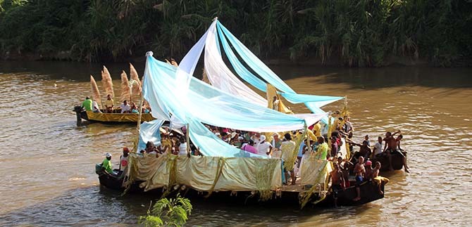 Las balseadas son procesiones en canoas. Éstas son construidas en troncos ahuecados que, al son del tambor, conducen imágenes católicas a lo largo del río hasta el poblado.