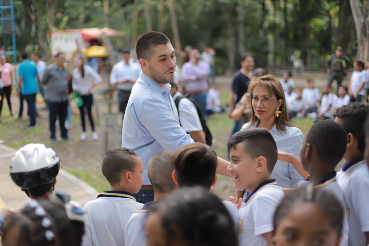 El recorrido inició en el centro recreativo El Bosque Municipal, sitio en el cual el mandatario junto a la secretaria de Tránsito Olga Mera, entregó a más de 100 niños pedagogía en normas de tránsito de manera práctica. Así, subidos en una bicicleta aprendieron sobre señales y cultura vial.
